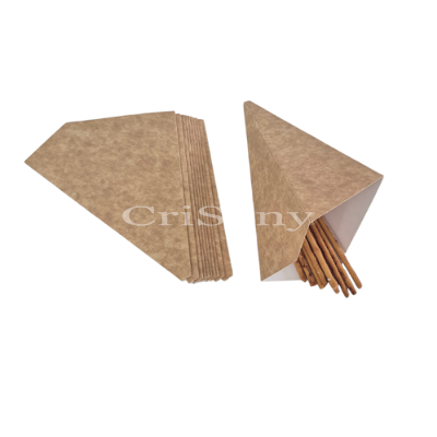 Представяме ви нашите картонени фунии за картофки, идеални за сервиране на любимите ви хрупкави изкушения! Тези фунии са перфектни за заведения за бързо хранене, фестивали, събития на открито или просто за домашна употреба. С тях всяка порция картофки ще изглежда професионално и апетитно.